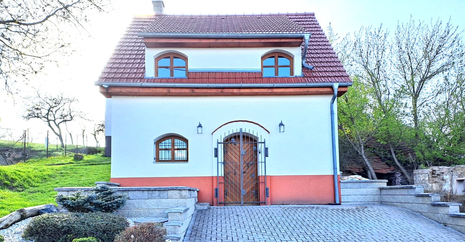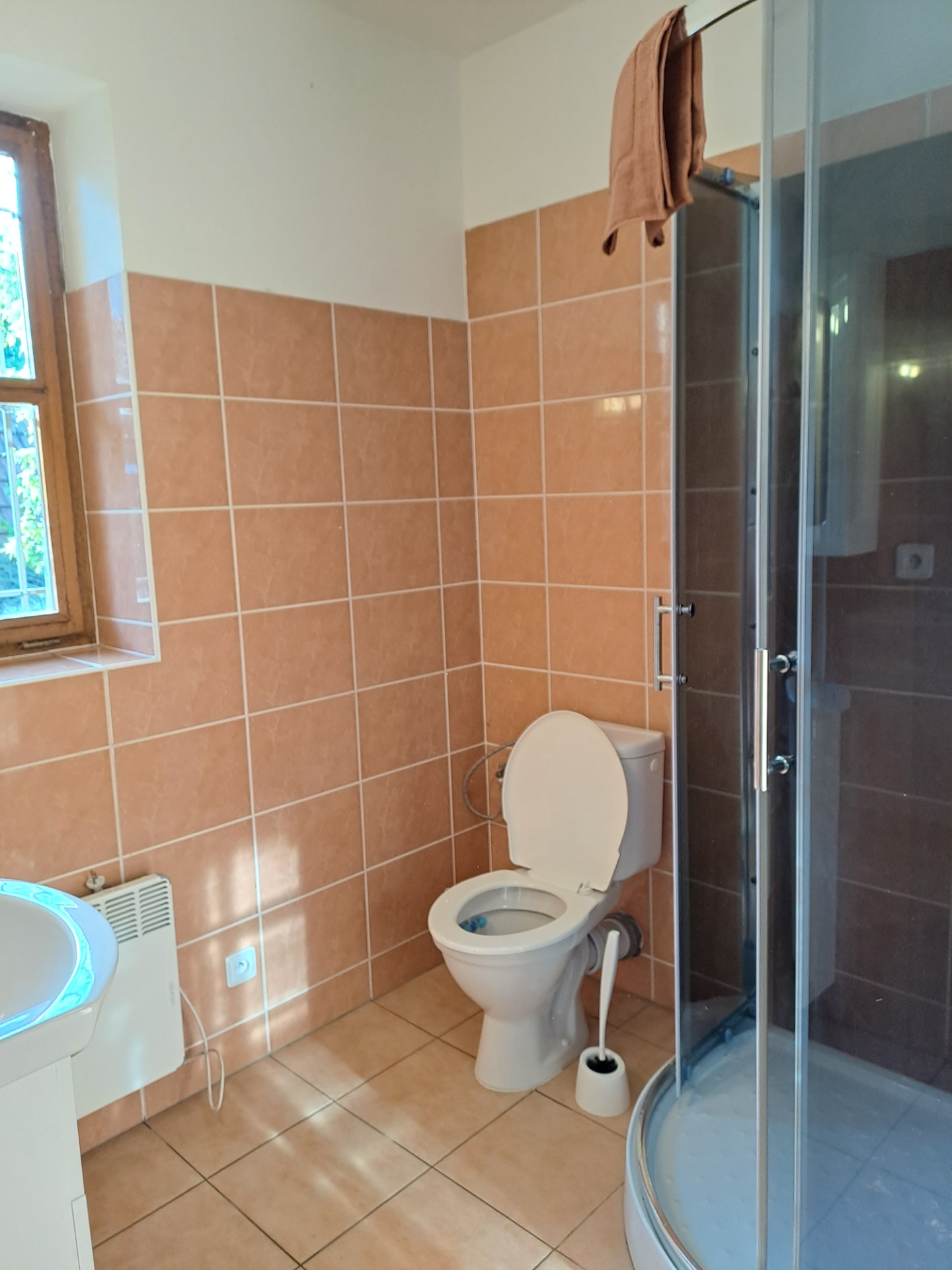 Součástí je i koupelna se sprchovým koutem a záchodem + záchodem dole v přízemí